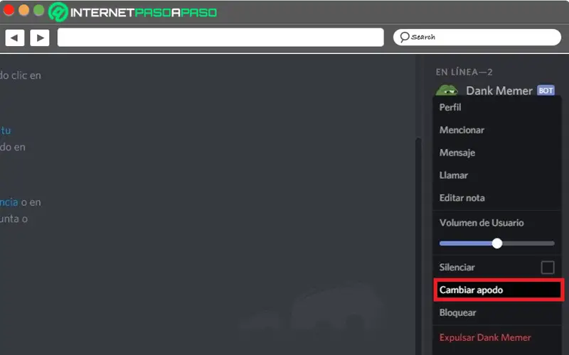 - Maintenant, ils vont vous montrer un menu contextuel qui a diverses options et, parmi toutes, vous devrez appuyer sur celui qui dit «Changer de pseudo» . Avec cela, il ne reste plus qu’à entrer le nom que vous voulez et c’est tout .