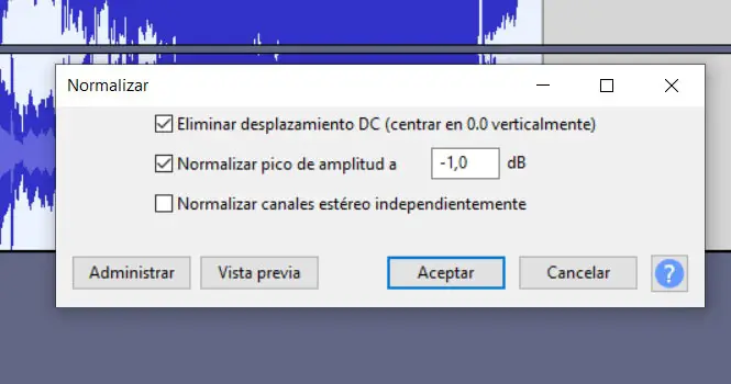 Pour résoudre ce bug, cliquez à nouveau sur le menu «Effets», puis sélectionnez l’option «Normaliser». Ici, nous pouvons déjà établir le niveau de normalisation , bien qu’il soit conseillé de laisser celui que nous trouvons par défaut. Bien sûr, avant d’accepter les modifications, nous pouvons voir comment l’audio sera à partir du bouton de prévisualisation.