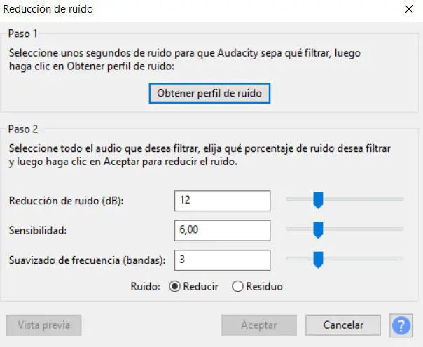 Un autre des défauts les plus courants dans les fichiers audio est le bruit de fond populaire qui est parfois généré. Celles-ci sont normalement créées si nous faisons un enregistrement à domicile, que ce soit de la musique ou de la voix, ce qui peut devenir un problème. Par conséquent, encore une fois, nous pouvons utiliser Audacity pour faire tout ce travail et nous pouvons éliminer ce bruit de fond ennuyeux.