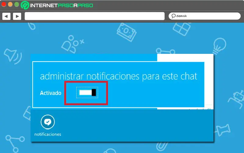 Pour cela, vous devrez accéder à votre compte Skype depuis votre ordinateur et rechercher le chat avec l’utilisateur pour lequel vous souhaitez activer ou désactiver les notifications. Ensuite, vous devez entrer dans la section Notifications qui existe là – bas et procéder à leur gestion (soit déplacer le commutateur sur «activé» ou «désactivé» ).