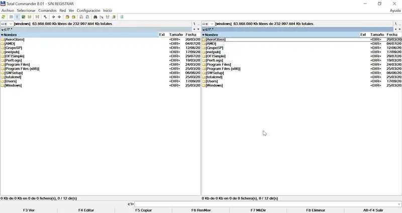 Total Commander est un programme chargé d’améliorer l’Explorateur Windows, en lui fournissant des options nouvelles et intéressantes. Parmi ses fonctionnalités, il dispose d’un client FTP intégré, d’un compresseur et d’un décompresseur de fichiers, d’une meilleure recherche de fichiers et d’un support pour les noms longs. Cet outil utile nous permettra de synchroniser les répertoires ou de rechercher des fichiers en double. Prend en charge le proxy pour FTP, afin que nous puissions partager des fichiers sur le réseau entre divers appareils. Ce programme nous montre d’une part un schéma de dossier et d’autre part les fichiers du dossier sélectionné. De plus, il a une grande polyvalence, puisqu’une grande partie des options de Total Commander peut être placée dans la barre d’outils, afin que nous puissions la configurer à notre guise.