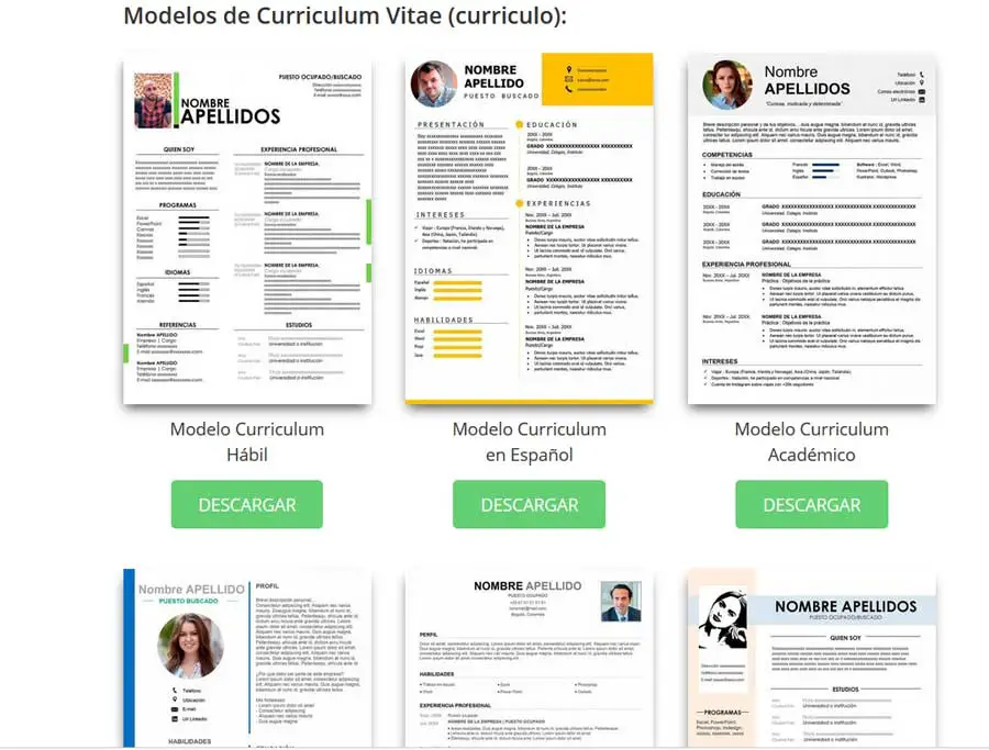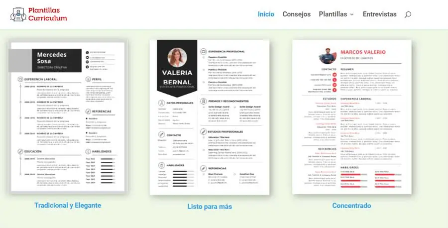 Quelque chose de similaire à ce qui s’est passé dans le cas susmentionné, nous avons trouvé sur le site Web de l’entretien d’embauche. C’est un site auquel nous accédons à partir de ce lien qui nous offre des outils et des conseils pour trouver un emploi. Il propose également une série d’exemples sous forme de modèles de CV pour Word . Ici, nous allons les voir plus modernes, créatifs , basiques, etc. en fonction de ce dont nous avons besoin dans chaque cas.