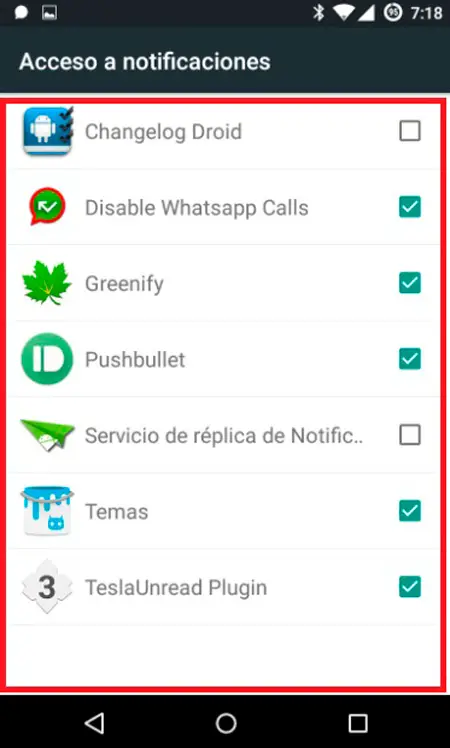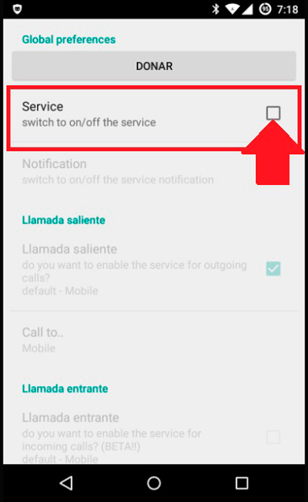 - Ici, vous devez sélectionner la première case qui apparaît à l’écran, elle sera chargée d’ activer le service d’application sur votre smartphone , permettant ainsi au programme de fonctionner correctement .