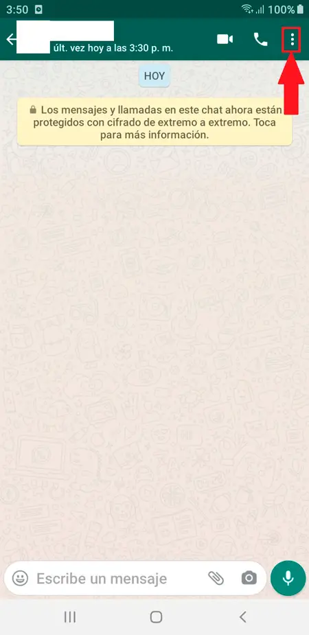 - Lorsque vous l’avez atteint, cliquez dessus pour entrer dans le chat . Une fois dans le chat de cette personne, vous devez cliquer sur les trois points situés dans la partie supérieure droite de l’écran.