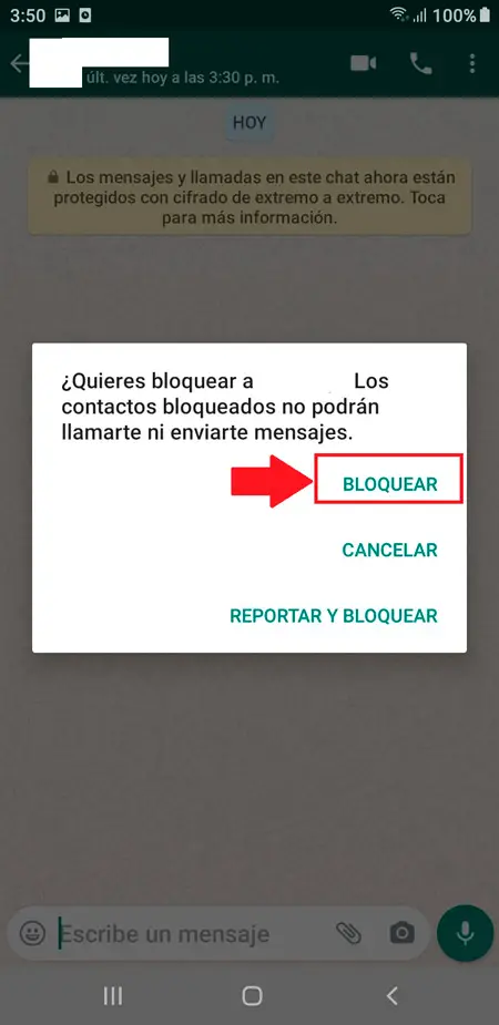 - Ensuite, une fenêtre apparaîtra sur l’écran où elle vous demandera si vous êtes sûr de bloquer ladite personne , ici vous devez sélectionner à nouveau l’option «Bloquer» de cette manière, vous pouvez empêcher cet utilisateur de continuer à vous déranger par les appels vocaux de l’application .