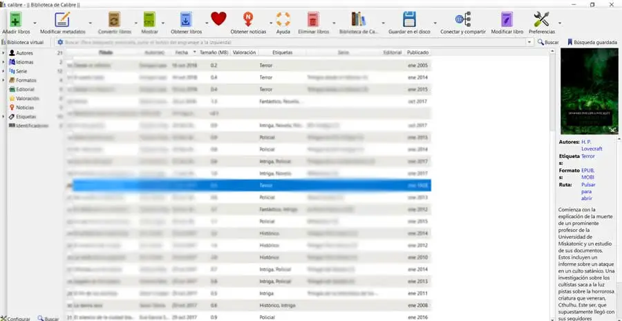Il est très probable que les habitués des livres électroniques aient déjà essayé ce programme à certaines occasions, ou du moins vous en aurez entendu parler. Eh bien, pour ceux d’entre vous qui ne le savent pas, dites que c’est une application puissante qui fonctionne localement sur le PC. Son objectif principal est de nous permettre de créer et de gérer notre propre bibliothèque de contenu de ce type, c’est-à-dire des ebooks.