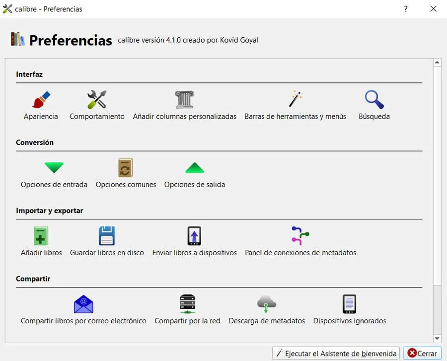 De cette façon, nous pouvons obtenir des livres de Calibre même dans les magasins en ligne les plus populaires, télécharger du nouveau contenu, le convertir, le lire ou modifier les métadonnées des titres. Il est également important de savoir que depuis la section Préférences , nous avons accès à un bon nombre de paramètres personnalisables. Avec ces derniers, nous aurons l’occasion d’adapter le programme dont nous parlons, à nos besoins personnels.
