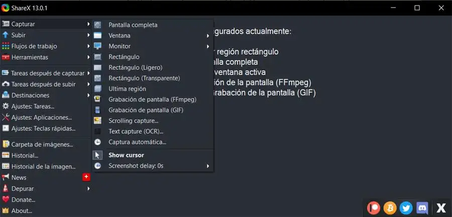 C’est pour tout cela que dans ce cas ou nous allons parler de l’une des propositions les plus populaires de ce type, comme Sharex . C’est un programme gratuit dont l’objectif principal est de nous permettre de prendre des captures d’écran avancées sous Windows . Et lorsque nous parlons de captures, nous entendons des images fixes, des enregistrements vidéo avec ce qui se passe sur le même écran.