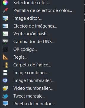 Mais ce n’est pas tout, puisque depuis la section Outils, ShareX nous propose une série de fonctions intéressantes qui nous seront très utiles. De cette façon, nous trouvons un éditeur d’ image utile , ou une autre fonction pour ajouter des effets numériques. En même temps, nous pouvons avoir une règle intégrée, vérifier le hachage ou capturer une certaine couleur à l’écran.