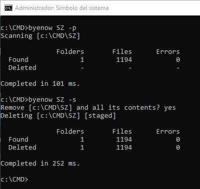 byenow est un programme simple conçu pour s’exécuter dans CMD pour permettre aux utilisateurs de supprimer de nombreux dossiers en une seule fois beaucoup plus rapidement que d’utiliser des commandes classiques comme rmdir.