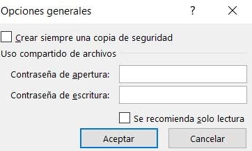 En changeant le troisième, nous vous dirons qu’une autre erreur que nous commettons habituellement lors de l’utilisation de ce programme est de ne pas protéger nos documents . Ceci est important car, en règle générale, les données que nous allons utiliser ici sont généralement assez sensibles. Comme nous ne voulons pas que ceux-ci tombent entre les mains d’autres personnes, il est préférable de protéger les documents créés ici avec un mot de passe. Dites que c’est quelque chose que nous pouvons réaliser à partir du menu Fichier / Enregistrer sous. Dans cette fenêtre, nous cliquons sur le lien appelé Outils et cliquons sur Options générales, où nous pouvons déjà protéger la feuille avec un mot de passe d’accès .