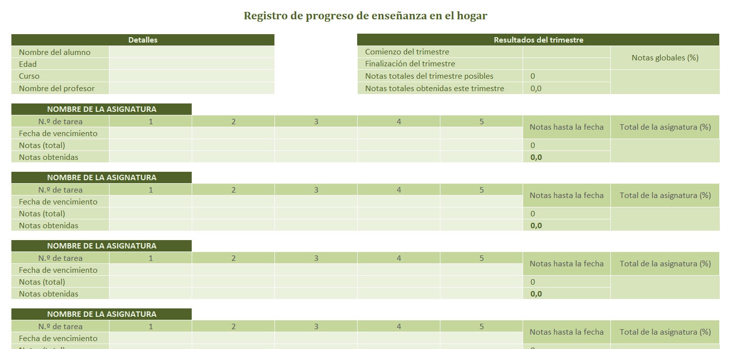 Avec tout et avec cela, une bonne partie du travail est déjà faite, il ne nous reste plus qu’à apporter quelques touches dans le design , si nous le souhaitons, et à saisir nos données . Ainsi dans quelques minutes nous aurons un document pour contrôler les matières et les notes obtenues cette année académique.