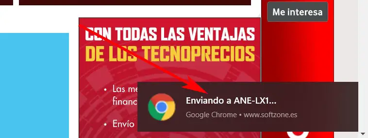 De cette façon, après quelques secondes après avoir cliqué sur l’option mentionnée qui vient d’arriver dans Chrome, une notification apparaîtra sur l’appareil cible. À partir de ce moment, nous pouvons y accéder afin que Chrome ouvre le lien envoyé immédiatement. Par conséquent, comme nous le voyons, le processus est rapide et la notification apparaît sur l’autre ordinateur en quelques secondes.