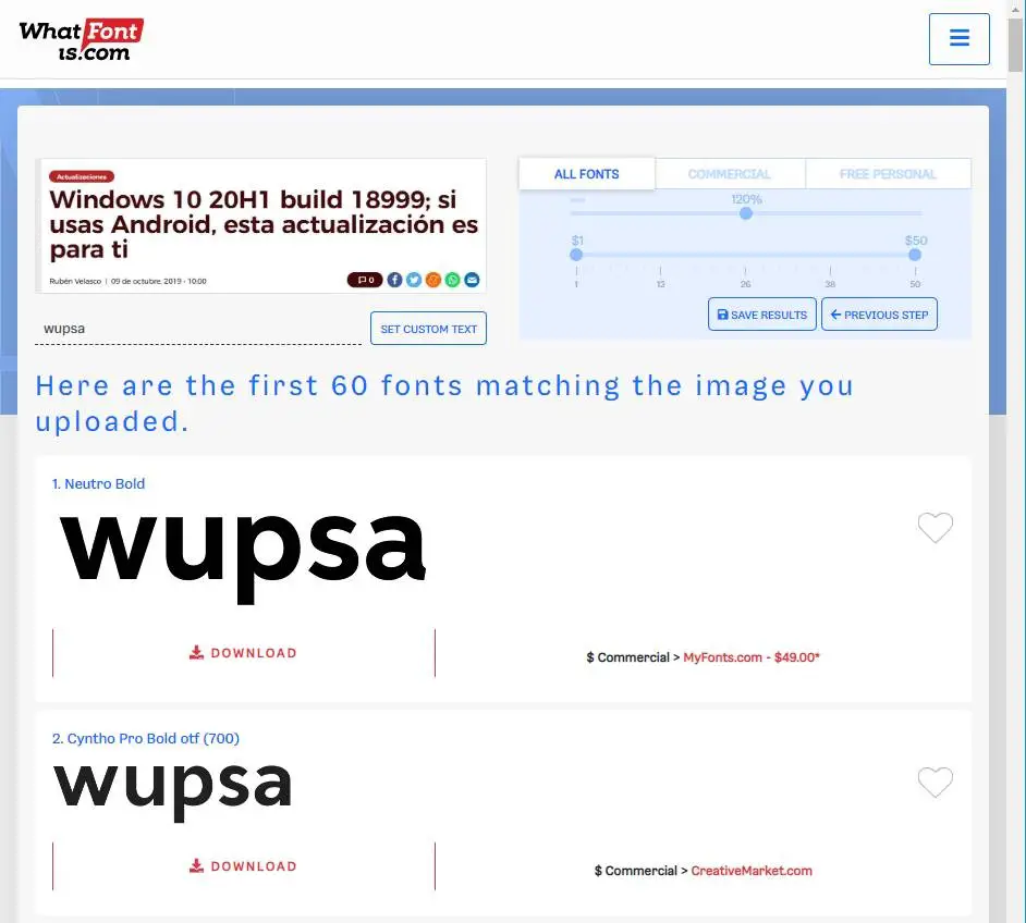 Si nous connaissons le nom de la police, le trouver sur Internet n’est pas du tout compliqué. L’une des alternatives ci-dessus l’a sûrement, et sinon, une recherche rapide sur Google nous permettra de la trouver en quelques secondes. Les problèmes surviennent lorsque nous ne savons pas quel est le nom de la source. Comment le cherchons-nous alors?