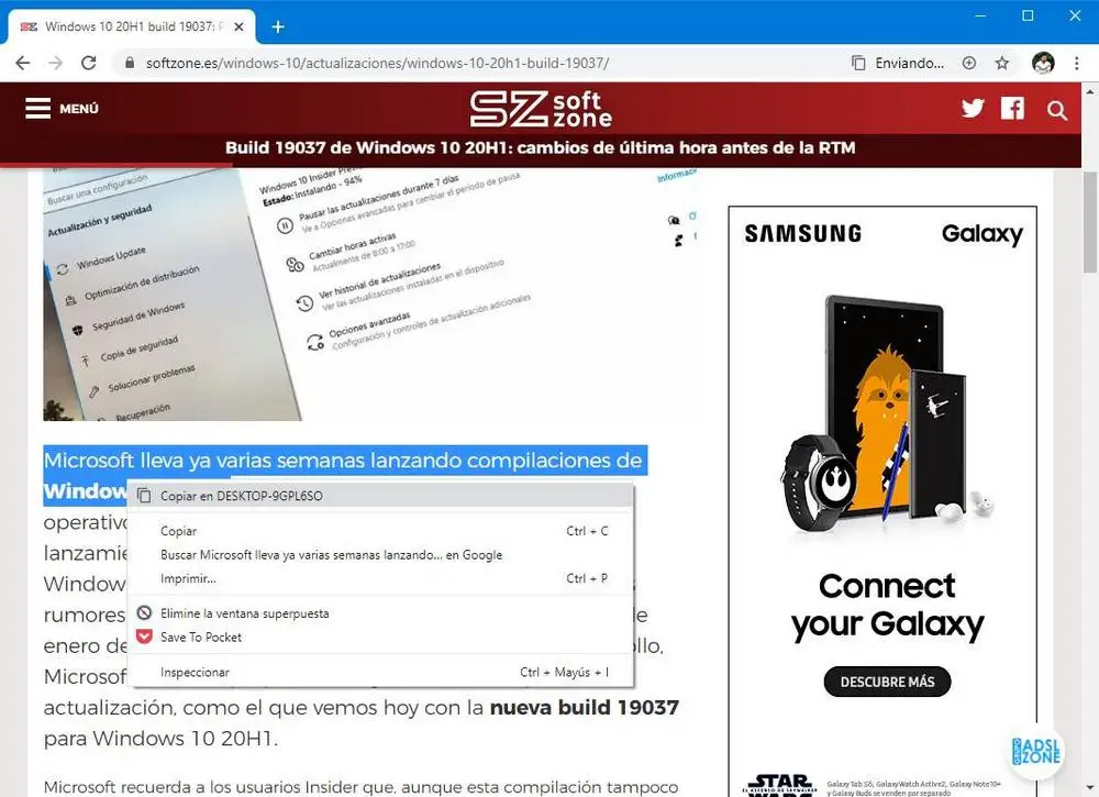 Une fois que nous avons activé cette fonction expérimentale sur notre smartphone et / ou sur les deux ordinateurs, il ne nous reste plus qu’à sélectionner n’importe quel texte d’un site Web et à cliquer dessus avec le bouton droit.