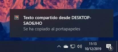 Comme nous le verrons, une option apparaîtra qui nous indiquera » Copier vers » suivi du nom de l’ordinateur sur lequel nous allons copier le contenu. Nous cliquons simplement sur cette option et c’est tout. Les services de synchronisation Google se chargeront d’envoyer le texte sélectionné directement à l’appareil sélectionné. Dans celui-ci, nous pouvons voir une notification qui nous dira que le texte a été reçu et copié dans le presse-papiers.