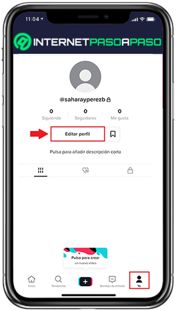 - Comme dans les autres cas, commencez par entrer votre compte TikTok pour appuyer sur la section «I» en bas de l’écran.
