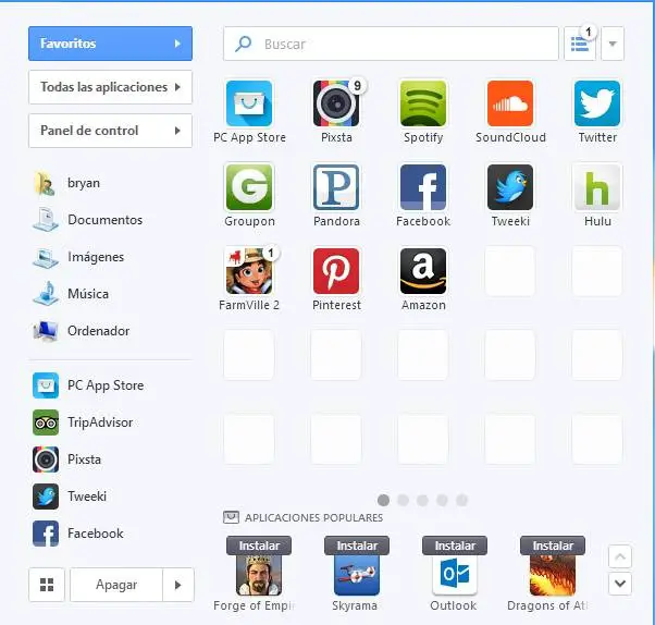 Pokki est l’une des alternatives les plus complètes et révolutionnaires que nous puissions trouver. Cette alternative au menu Démarrer de Windows se comporte plus comme un lanceur de programme complet pour le système d’exploitation. Il nous permet de naviguer à travers tous les programmes que nous avons installés, d’accéder à nos répertoires personnels et, en plus, il dispose d’un panneau à droite dans lequel nous pourrons ancrer les programmes que nous utilisons le plus pour les avoir toujours à main. Il dispose également d’un magasin d’applications qui nous permettra de télécharger et d’installer des programmes très facilement.