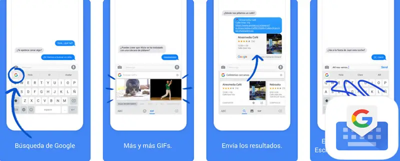 Développé par Google pour une utilisation spéciale sur les appareils iOS , ce clavier gratuit dispose d’options avancées qui en font l’une des alternatives les plus complètes du marché. À partir car il prend en charge plus de 40 langues , il est tout à fait rapide, il ajoute une grande variété de emojis et GIFs , elle permet la saisie en faisant glisser le doigt et il facilite les recherches Google, grâce au fait qu’il a Google Search intégré dans ce .