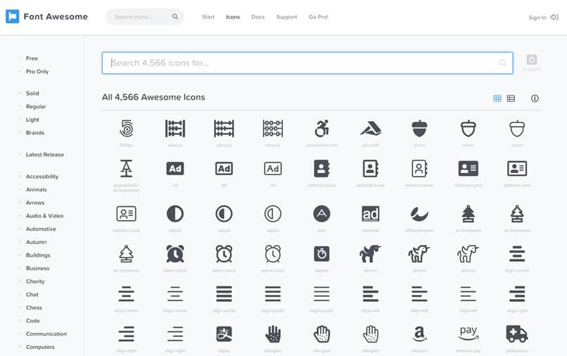 Pour pouvoir choisir les icônes que vous souhaitez utiliser, il vous suffit de commencer par accéder à la page officielle Fontawesome. Une fois sur place, il vous suffit de cliquer sur l’option icônes. En son sein, vous pouvez choisir entre des centaines de packs d’icônes , il vous suffit de localiser celui que vous aimez le plus.