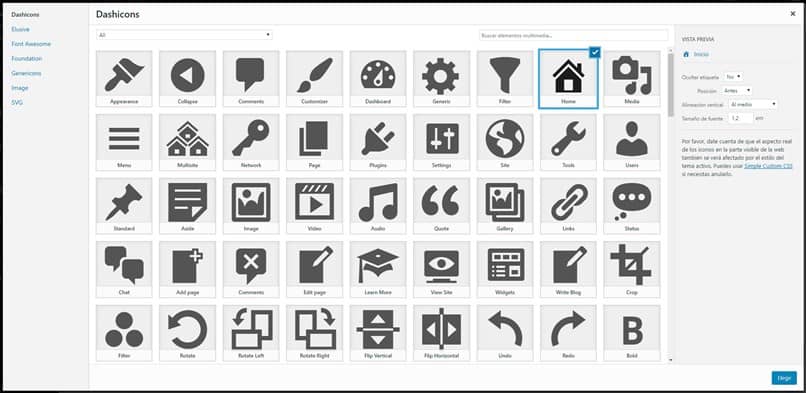 Par défaut, WordPress apporte une police d’icônes qui est installée précédemment et elle est principalement utilisée pour indiquer les icônes destinées au bureau, telles que l’icône du téléphone et même les icônes utilisées pour représenter certains réseaux sociaux .