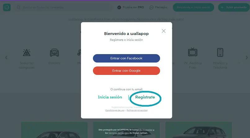 - Dans le moteur de recherche de votre ordinateur , entrez «Wallapop» et entrez sa page officielle