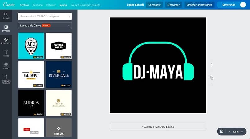 Par conséquent, si nous appuyons sur le bouton » Créer un design » situé en haut du panneau gauche de l’écran d’accueil, de nombreuses alternatives seront affichées.