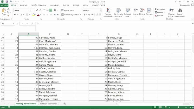 Dans ce cas, » HIERARCHY.EQV » est le code utilisé pour donner l’ordre de modification à la plage de données sélectionnée; dans le cas de ceux qui ont des versions antérieures à Excel 2010, ils n’ont qu’à écrire le mot « HIÉRARCHIE ».