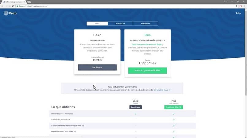 Il n’est pas clair sur la page d’accueil s’il existe d’autres options. Si vous cliquez sur Basic en haut de l’écran, vous verrez la description de l’abonnement Plus et vous verrez également un compte Prezi gratuit appelé Basic.
