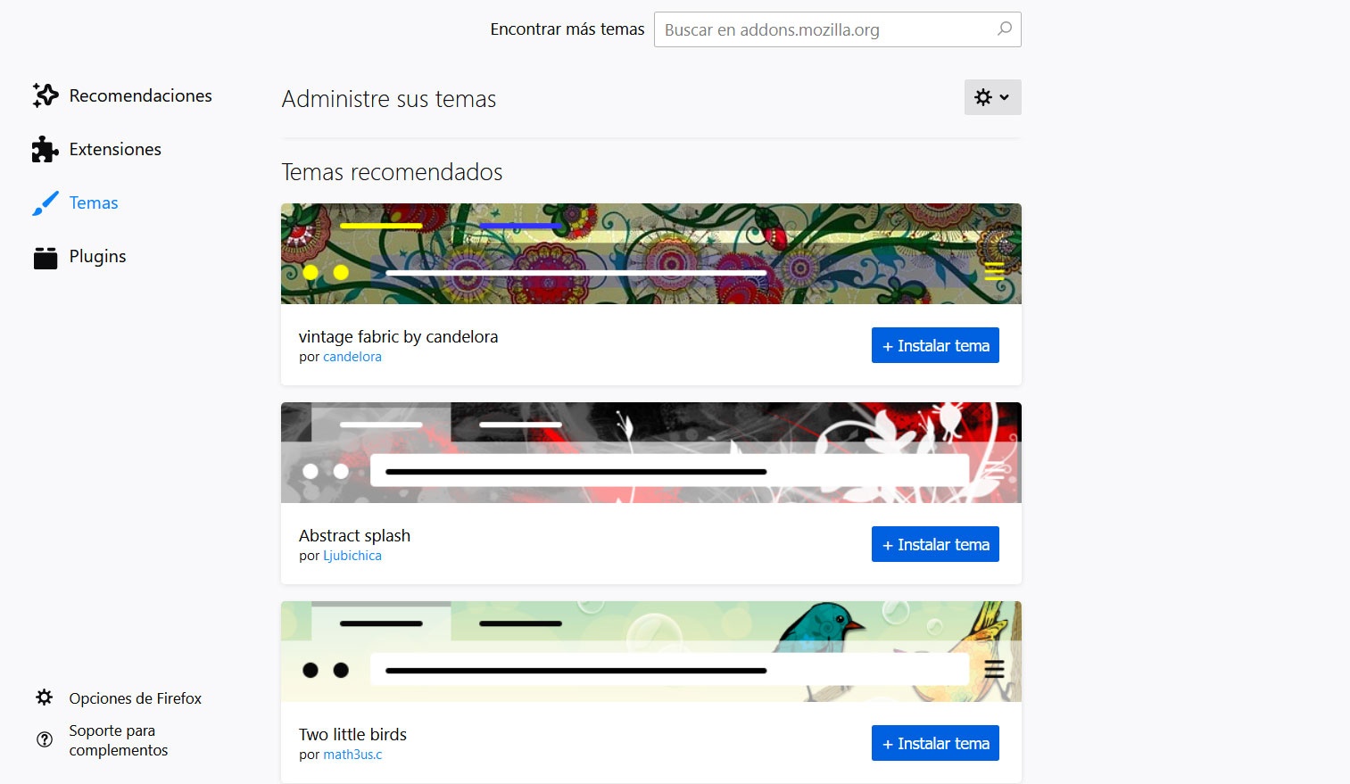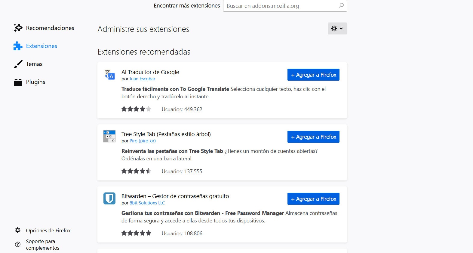 Cependant, malgré les améliorations, il y a eu un changement en or que beaucoup n’ont pas aimé et qui fait référence à une section tellement utilisée par presque tout le monde, comme celle qui fait référence aux extensions que nous ajoutons au programme . Nous disons cela parce que la nouvelle version de Firefox a non seulement ajouté un nouveau look pour la section du gestionnaire de modules complémentaires , mais nous montre également une série de recommandations pour les thèmes et les extensions .