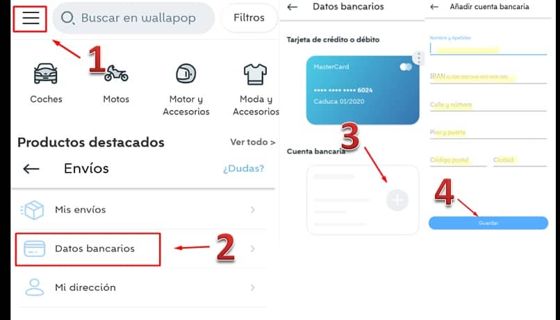Par conséquent, pour lier un compte de revenus sur cette plate-forme, vous devez avoir téléchargé et installé l’application Wallapop sur votre mobile . Ensuite, vous ouvrez l’application et dans les trois lignes qui apparaîtront en haut, sélectionnez Expédition. Ensuite, allez dans la section des coordonnées bancaires et là vous ajoutez un compte bancaire.