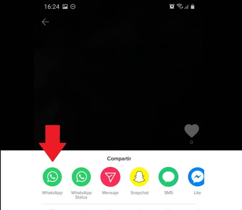 - Là, vous devez sélectionner Enregistrer la vidéo , après cela, sélectionnez la méthode par laquelle vous souhaitez l’envoyer, nous vous recommandons que ce soit WhatsApp.
