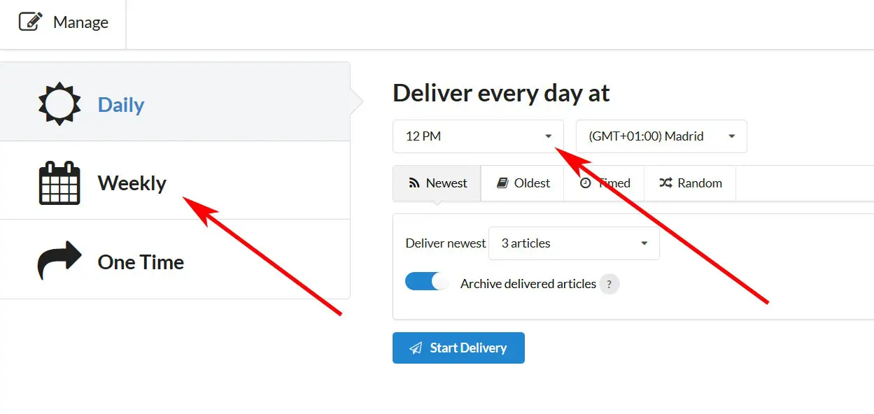 Ainsi, nous devrons y spécifier le moment exact auquel le contenu sera envoyé, ainsi que ceux que nous allons envoyer au Kindle, et si nous le ferons quotidiennement, hebdomadairement ou à ce moment précis une seule fois . Comme nous voyons le processus de configuration, une fois que nous sommes enregistrés à la fois sur cette plate-forme et dans le compte Amazon, c’est assez simple et intuitif et nous devrons remplir peu d’ informations supplémentaires.