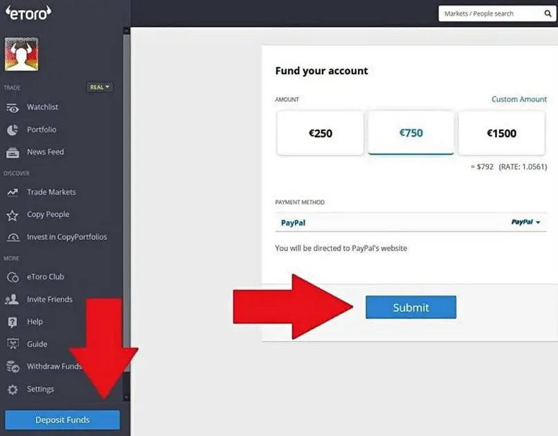 - Comme vous devez avoir un solde en votre faveur, cliquez sur «Déposer des fonds» et vous pourrez charger votre solde de votre compte PayPal sur votre nouveau compte chez eToro. Une fois que vous voyez votre solde disponible, cliquez simplement sur «Instruments» et recherchez Litecoin. Achetez toute la quantité dont vous avez besoin.