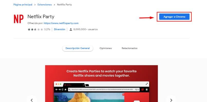 • La première chose à faire est de télécharger l’extension, pour cela nous allons sur le Chrome Web Store et cherchons  Netflix party .