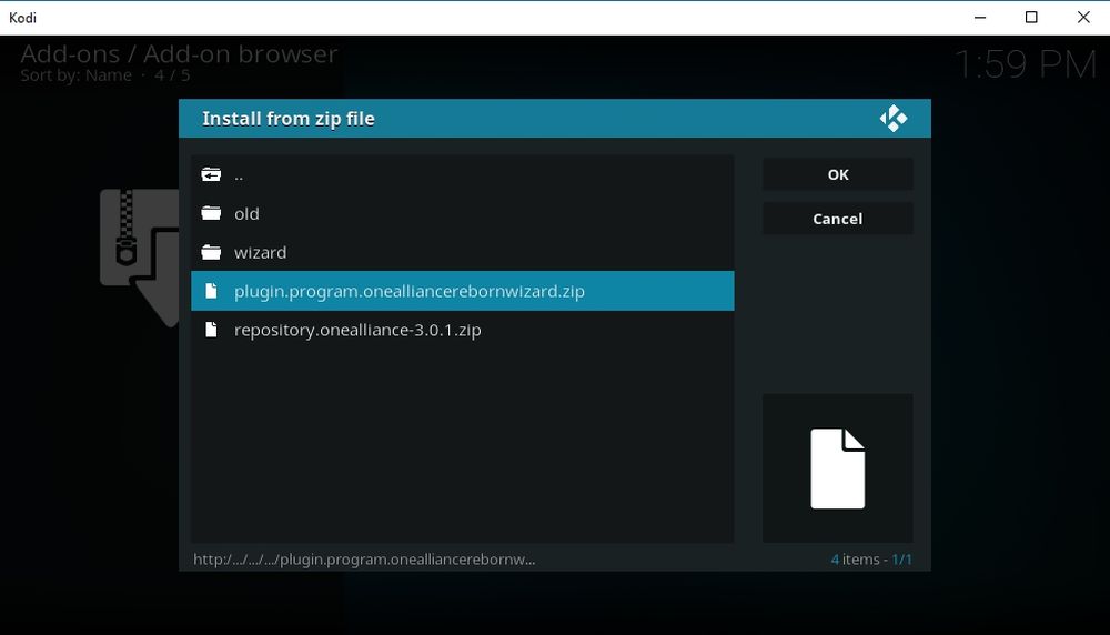 - Faites défiler vers le bas et recherchez le fichier appelé plugin.program.onealliancerebornwizard.zip