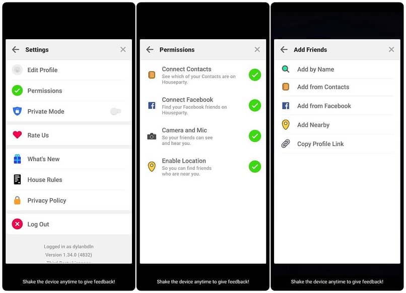 Dans la liste apparaît l’option Permissions ou «Permissions», là vous pouvez désactiver ou bloquer la fonction de partage de l’emplacement de l’utilisateur ; De cette façon, vous évitez de faciliter le contact d’étrangers avec vos enfants, en les protégeant des prédateurs et des personnes malveillantes; qui profitent des réseaux sociaux pour leur nuire. Si vous souhaitez approfondir cette question de sécurité chez HouseParty, vous pouvez consulter cet article où nous les expliquons en détail.