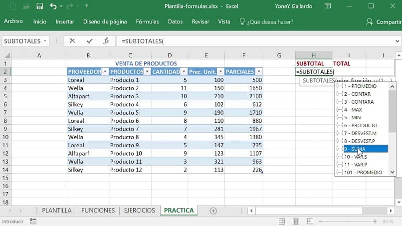 - Lors de l’exécution de la fonction de sous-total, vous devez tenir compte du fait que, quelle que soit la valeur numérique de la fonction que vous utilisez, elle ne prend pas en compte les lignes qui ne sont pas incluses dans le résultat d’un filtre .