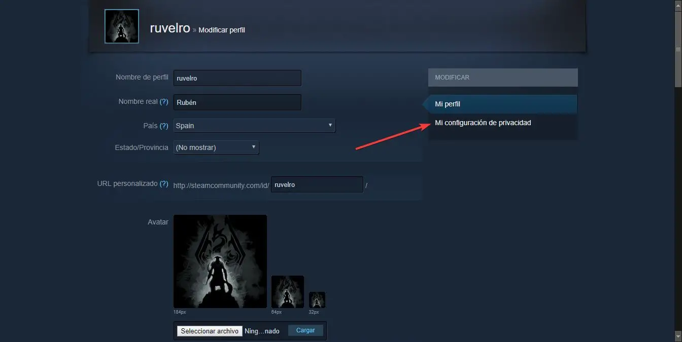 Nous allons le faire depuis l’application Steam. Pour ce faire, à partir de la page de profil que nous vous avons présentée précédemment, nous cliquerons sur le bouton « Modifier le profil » pour accéder à ses options de configuration. Ici, nous devons cliquer sur « Mes paramètres de confidentialité » et nous verrons toutes les options de confidentialité de cette boutique.
