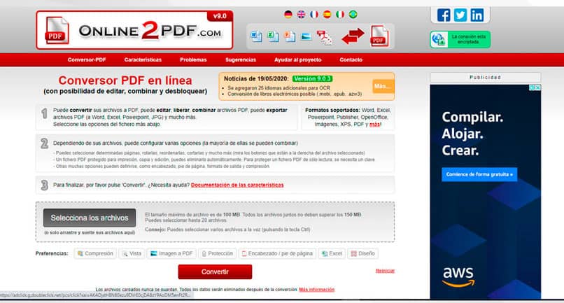 Il se caractérise non seulement par la conversion de fichiers en PDF, mais vous pouvez également transformer des fichiers PDF en d’autres formats. Parmi les formats qu’il prend en charge pour convertir se trouve l’extension PUB et il vous suffit de sélectionner le fichier et de le télécharger sur la page .