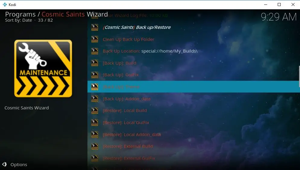 Utilisez l’assistant Cosmic Saints pour sauvegarder et restaurer Kodi