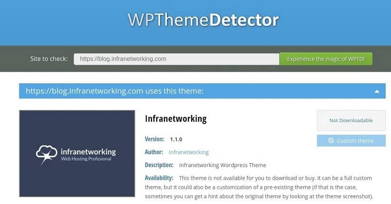 - Détecteur de thème WordPress : Il vous aide à analyser et à espionner, lorsque vous lancez la recherche après avoir inséré le lien, cela peut prendre plusieurs minutes, mais finalement toutes les données dont vous avez besoin ou même beaucoup plus apparaîtront.