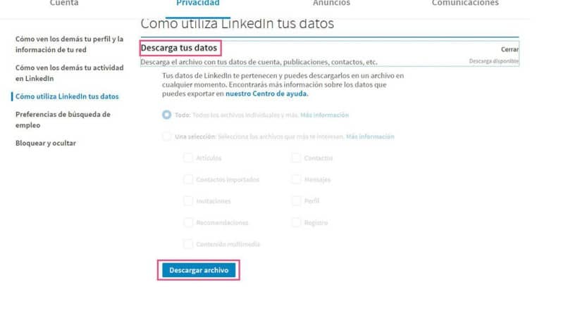 N’oubliez pas que vous pouvez toujours revenir au processus d’ enregistrement ou de création d’un compte sur LinkedIn en espagnol . De cette manière, l’ exportation et la gestion de vos contacts ou connexions LinkedIn seront à nouveau à portée de main.