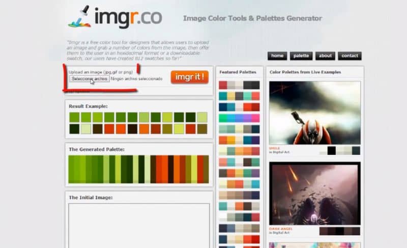 Au départ, il convient de noter qu’il existe plusieurs pages avec lesquelles vous pouvez créer des palettes de couleurs pour les télécharger et les importer ultérieurement dans le programme Photoshop. Dans ce cas, vous travaillerez avec imgr.co qui fonctionne de manière simple et en quelques étapes, vous obtiendrez une nouvelle palette de couleurs.
