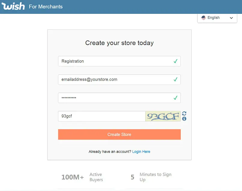 N’oubliez pas que pour commencer, vous devez vous inscrire sur la page officielle Wish et vous connecter comme vous le feriez si vous créiez un compte sur Ebay ou Amazon. Mais c’est si nous devons ouvrir un compte en tant que vendeur de la plateforme Wish. Si vous ne savez pas comment le faire, nous allons vous indiquer ci-dessous les étapes à suivre pour créer votre compte en tant que vendeur et vendre vos produits sans problème.