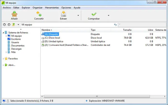 Un autre compresseur de fichiers très populaire basé sur la technologie open source et qui a une version portable que nous pouvons toujours utiliser sur notre clé USB pour travailler avec toutes sortes de fichiers depuis n’importe quel ordinateur. Pour cela, il est compatible avec plus de 180 formats de fichiers , parmi lesquels on trouve 001, 7Z, ACE, ARC, ARJ, BZ2, CAB, DMG, GZ, ISO, LHA, PAQ, PEA, RAR, TAR, UDF, WIM , XZ, ZIP et ZIPX, entre autres. Un autre avantage important est son interface utilisateur, très simple et intuitive afin qu’elle puisse être utilisée par tous les types d’utilisateurs.