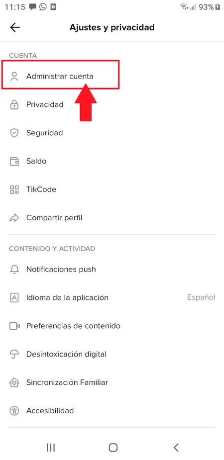 - Ensuite, un nouveau menu apparaîtra sur l’écran où vous devez sélectionner l’option «Gérer le compte» dans la section du compte.