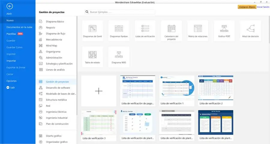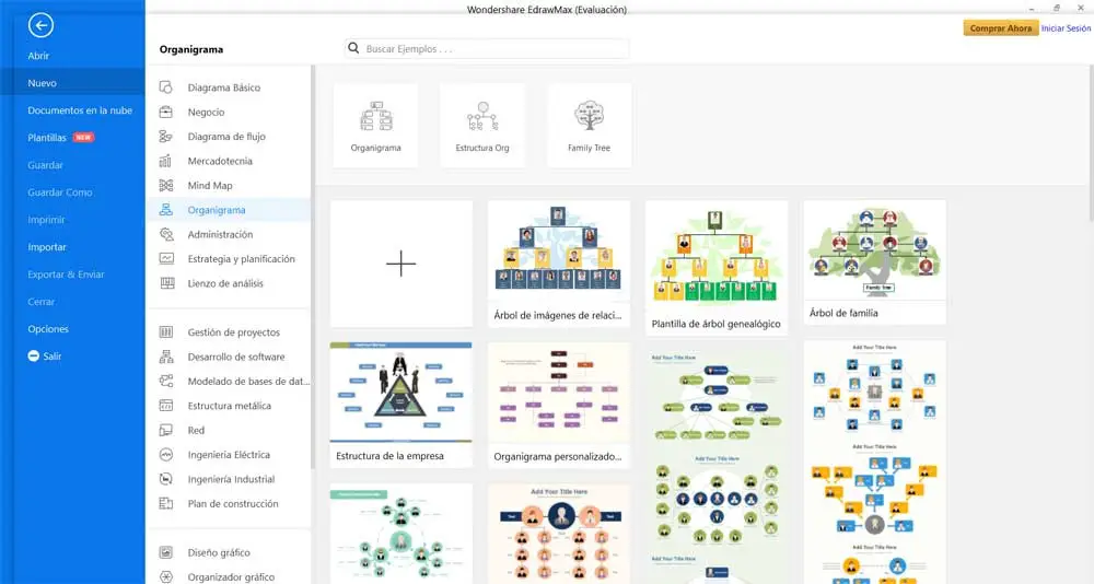 Il s’agit donc, comme prévu, d’un logiciel spécialement développé pour répondre aux besoins de tout utilisateur, tant professionnel que domestique, qui cherche à structurer son propre projet . De plus, la chose la plus intéressante à propos de Wondershare EdrawMax est qu’il s’adapte à n’importe quel environnement de travail. Cela est dû au fait que dès que nous exécutons le programme sur notre ordinateur, nous trouvons une grande variété de diagrammes de toutes sortes avec lesquels nous pouvons commencer à travailler.