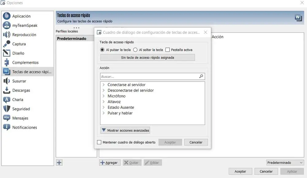 Al igual que sucede en la mayoría de los programas que usamos a diario, sean del sistema que sean, los atajos de teclado son básicos. Los mismos, como seguramente sabréis, nos permiten poder acceder y usar determinadas funciones de un modo más rápido a la vez que efectivo. Para ello no tenemos más que usar las correspondientes combinaciones de teclas predefinidas antes. Pues bien, esto es algo que también podemos aprovechar en TeamSpeak.