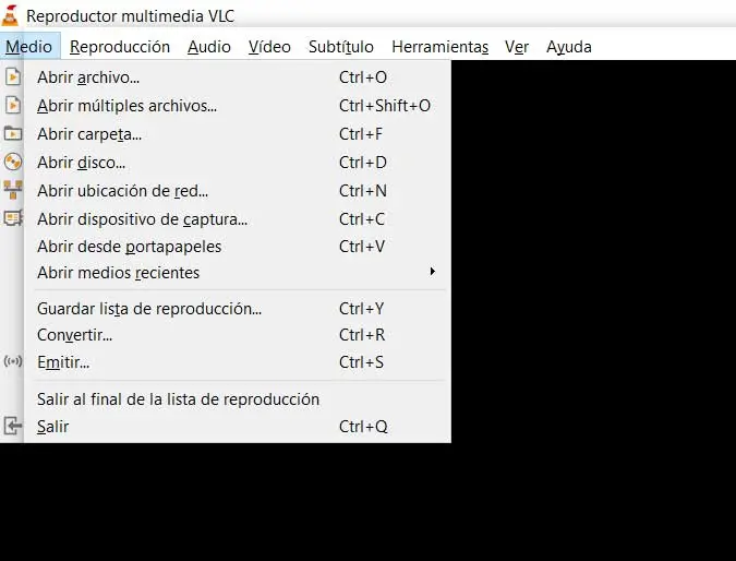 Comme vous le savez, pour quelque chose d’aussi simple que la reproduction d’une vidéo ou d’un thème musical, par exemple, il suffit de faire glisser le fichier vers l’interface. Cependant, la tâche qui nous intéresse dans ce cas précis se trouve dans le menu appelé Medium, où nous sommes situés.